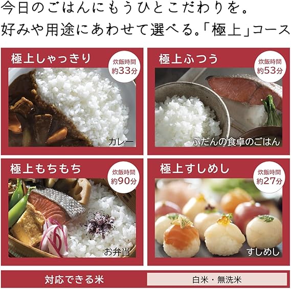 少量でも輪郭と甘みが際立つ炊き上がり。「快速」コースで少量設定できます。