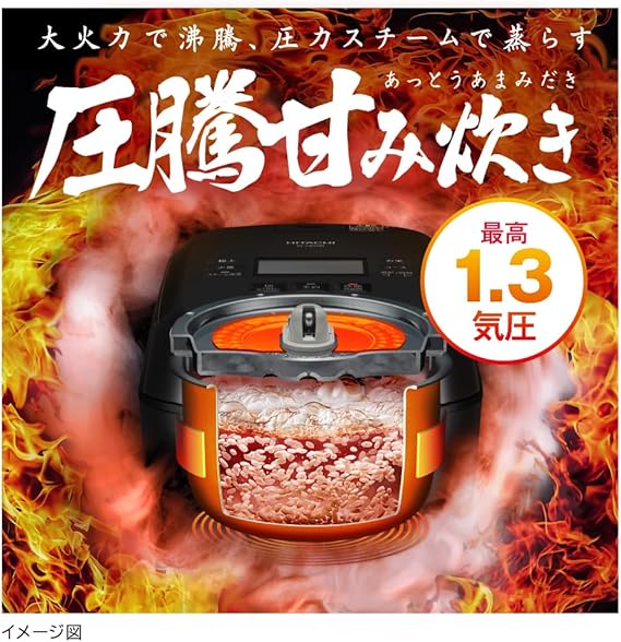 日立 炊飯器 5.5合 圧力&スチームIH ふっくら御膳 RZ-V100HM K フロストブラック 日本製 大火力 沸騰鉄釜 蒸気カット a