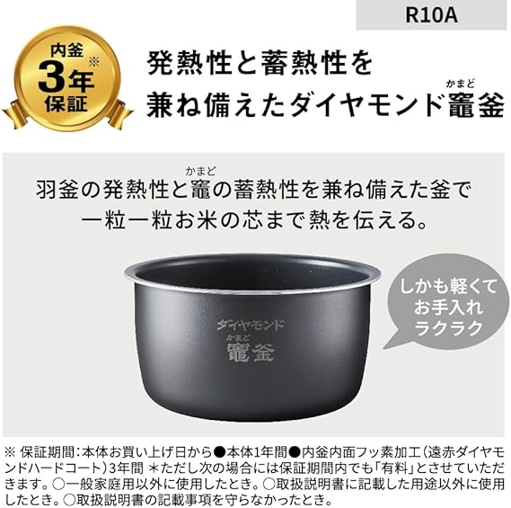 遠赤ダイヤモンドハードコート搭載でふっくら炊き上げる「ダイヤモンド竈釜」