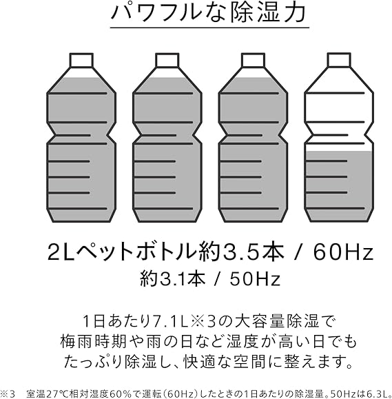 【1日あたり7.1Lの除湿力】1日あたり7.1L※1の大容量除湿で梅雨時期や雨の日など湿度が高い日でもたっぷり除湿し、快適な空間に整えます。