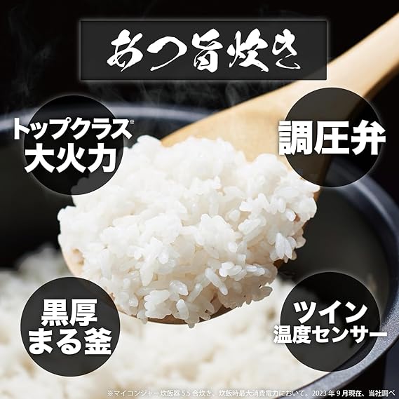 メニュー数:16( エコ炊飯・白米・無洗米・玄米・雑穀米)・少量大火力・氷艶炊き・炊きこみ・おかゆ・高速炊飯・急速炊飯・お湯炊き・調理(煮込み・低温調理・パエリア・クリーン)