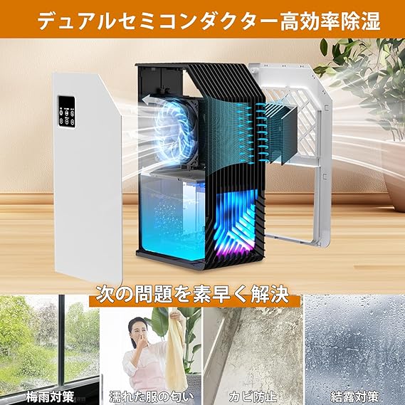 【湿気対策・衣類乾燥・空気浄化・全新進化のペルチェ式除湿機】新しい機能「衣類乾燥機能」を搭載しましたペルチェ式除湿機です。小型化と省エネに加え、従来のペルチェ式除湿機にはなかった衣類乾燥機能を追加し、洗濯物をより早く乾かすことができます。梅雨時期に洗濯物から生乾きの臭いがしやすいため、空気を浄化でき、匂いを抑える「マイナスイオン機能」も搭載しました。マイナスイオン発生器は、空気中に放出したマイナスイオンによって臭いを低減することができます。衣類のイヤな臭いを抑制しながら、衣類をより早く乾かします