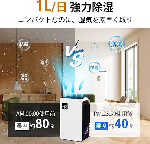 Euiyi 除湿機 小型 除湿器 【2025最新進化 静音 省エネ 2.5L大容量 満水自動停止 】 空気清浄機 強力除湿 アロマ 空気清浄機 部屋 1L/日除湿量 パワフル除湿 集塵フィルター 湿気 梅雨対策 結露 カビ防止 任せモード 切タイマー機能 小型 7色ライト 人気 日本語取扱説明書付 PSE認証済 CT16 a