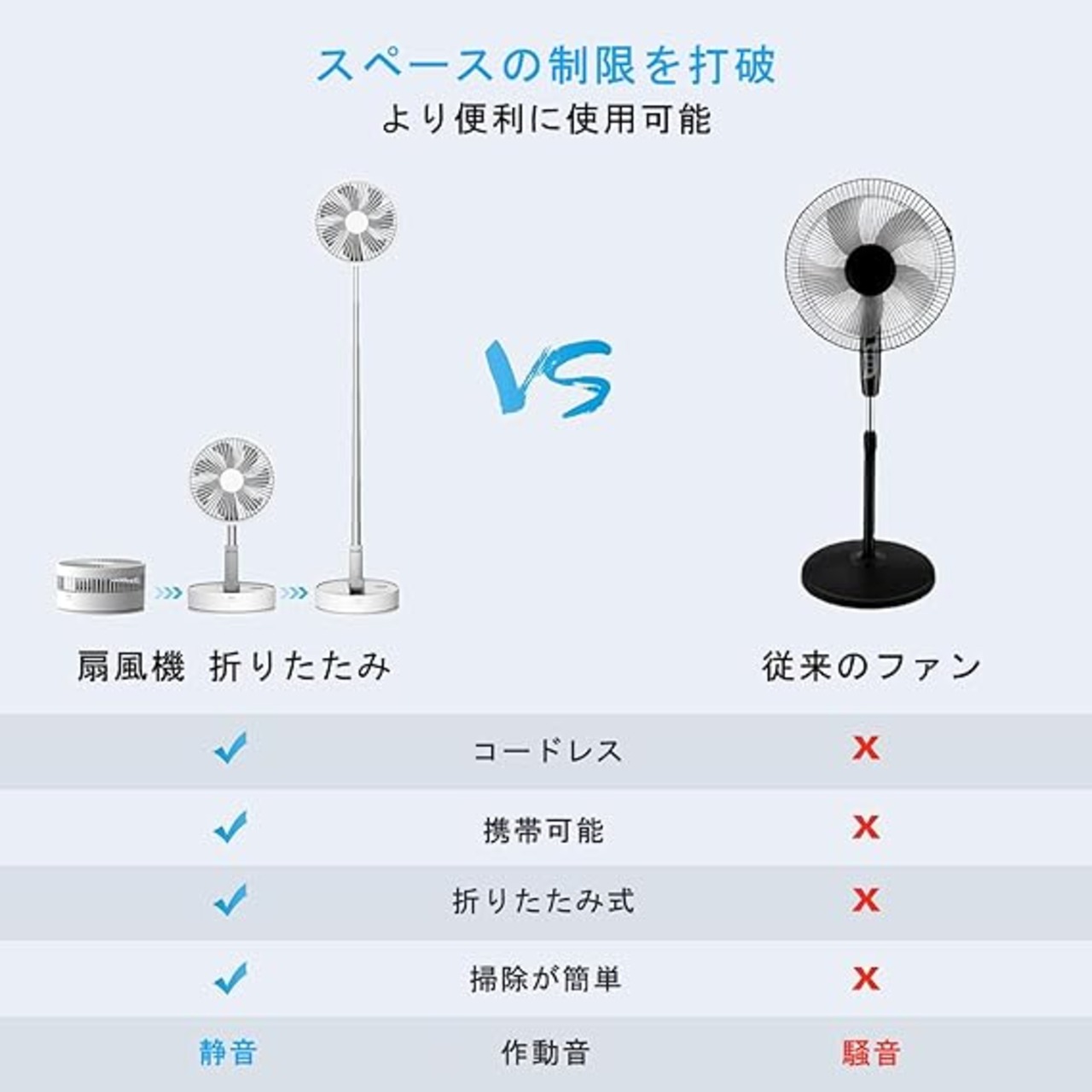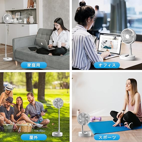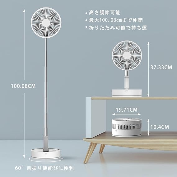 折りたたみ&自由伸縮: 38cmから102cmまで自由に調節可能。折りたたんで収納可能で、限られたスペースに最適。室内はもちろん、屋外でも使える多機能デスクトップファン