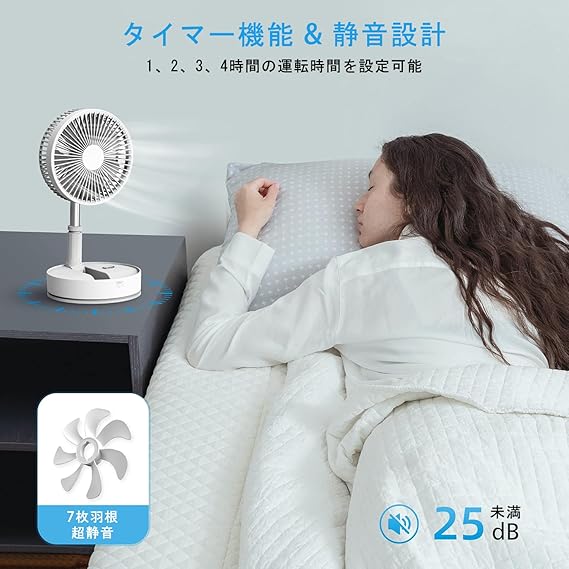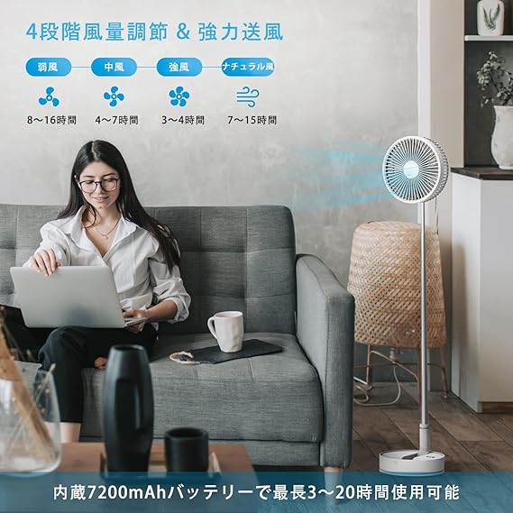 【進階款】扇風機 折り畳み リビング サーキュレーター 無段階伸縮式 リビング 首振り卓上扇風機 dcモーター扇風機 Type-c 充電式 コードレス タイマー付き 7枚羽根 静音 リモコン付き 7200mAh電池 高さ自由調節 4段階風量調節 小型 コンパクトに収納 室内 アウトドアに適用 ホワイト a