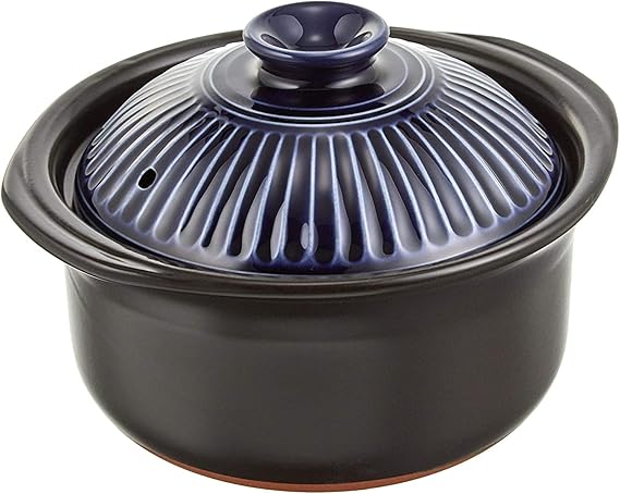 銀峯陶器 菊花 ごはん土鍋 (2合 炊き 瑠璃) 「 萬古焼 二重蓋 土鍋 ご飯 ごはん 鍋 炊飯 銀峯 炊飯鍋 」 a