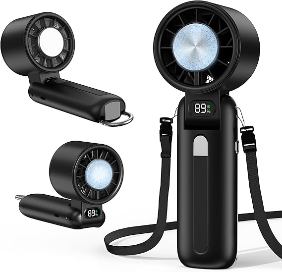 ハンディファン 冷却プレート搭載【2025新型・100段階風力調整可能・160°折り畳み】携帯扇風機 冷感 手持ち扇風機 5000mAh 長時間稼働 強風力 小型 ミニファン 熱中症対策 USB充電式 卓上 首掛け 金属カラビナ付き ストラップ付属 ブラック a