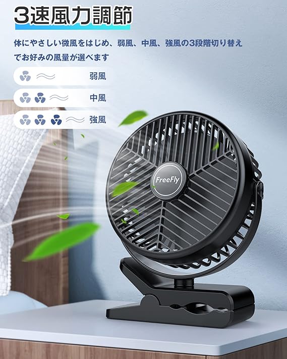 【10000mAh電池内蔵】FreeFly 充電式クリップ扇風機 卓上扇風機 直径約10CM羽根 14cm大型ファン搭載 風量3段階調整 Type-C・USB-A端子搭載 スマート急速充電対応 360度角度調整 デスク・リビング・野外など a