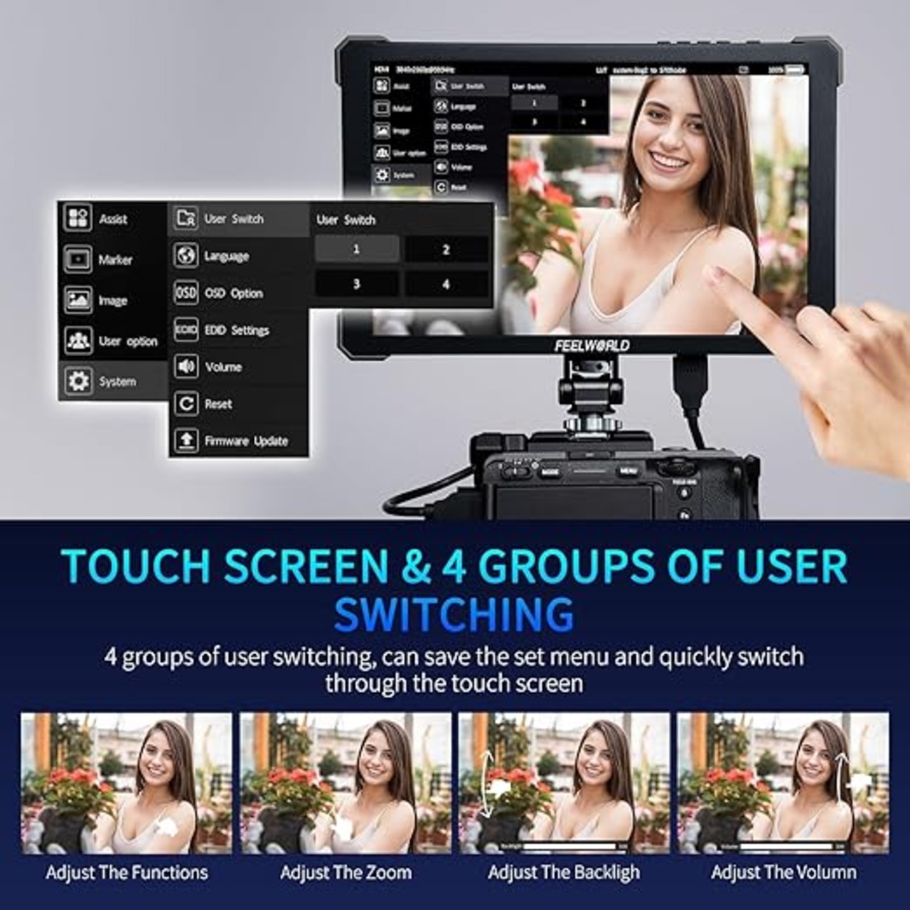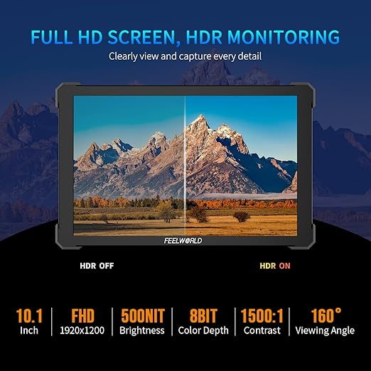 FEELWORLD T10 10.1インチカメラ現場デジタル一眼レフカメラタッチスクリーン、波形HDRと3 D LUT出力付きアルミ筐体ゴム化保護角設計 a