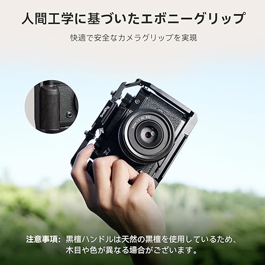 【優れたハンドグリップ】Z f用カメラケージ 4261 には黒檀のハンドルが付属しており、カメラを快適かつ安全にグリップできるように慎重に設計されています。 このハンドルにより、全体的な
