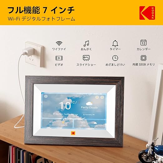 【KODAK 2025年 Wifi デジタルフォトフレーム 7インチ 1024*600HD 32GB内蔵 写真/動画/音楽再生 Wifi遠隔転送 リアルタイムに共有 タッチスクリーン 128GBまでSDカード usb-cに対応