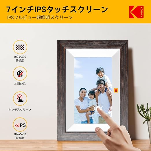 【KODAK 2025年 Wifi デジタルフォトフレーム 7インチ 1024*600HD 32GB内蔵 写真/動画/音楽再生 Wifi遠隔転送 リアルタイムに共有 タッチスクリーン 128GBまでSDカード usb-cに対応 a