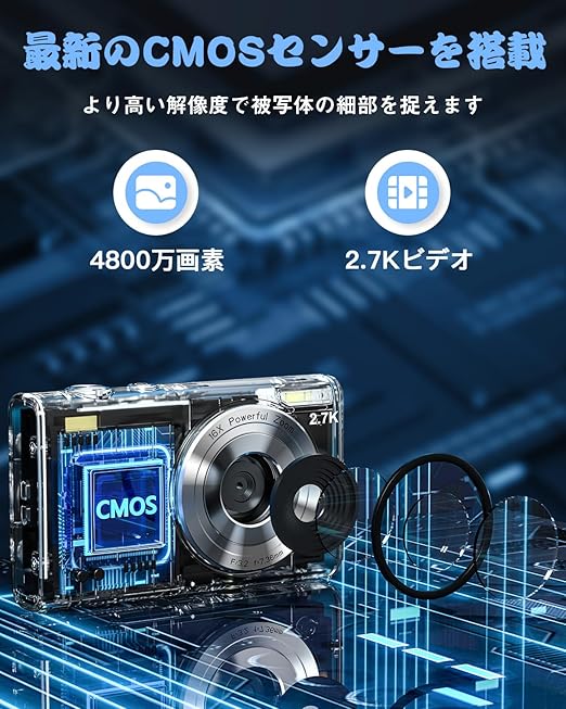 【4800万画素:鮮明で詳細】 このデジタルカメラは4800万画素の優れた高画質CMOSセンサーを搭載しており、細部豊かで鮮やかな写真を撮影することができます。高解像度の画像は、パソコンもスマホのディスプレイでも鮮明さを保ちます。風景、人物、静物など、あらゆる被写体を素晴らしい画質で表現できます。よりリアルにし、細部までこだわった表現が可能となり、驚くべき視覚体験を提供します。高画質ともに、4Kの高動画解像度も、自撮りやVlogにクリアな動画が残ります。