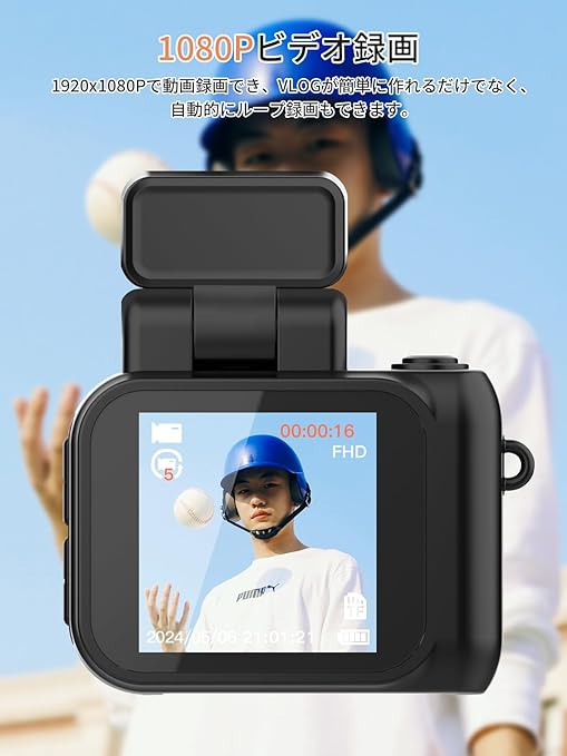 【1080P録画&200万画素】キュートでミニマルなデザインでしっかりと機能を凝縮した超小型デジカメです。音を収める1080P HD ビデオ録画、3760 x 2128 の写真解像度を備えており、鮮明でリアルな画像がキャプチャーされ、人物やイベントが鮮明に記録されます。トイカメラのように見えますが、デジカメの機能が確に実現されています。再生機能もあり、撮影した写真やビデオをいつでも確認できます。CMOSイメージセンサーを搭載しており、被写体を明確的に識別でき、手頃な価格で鮮やかな映像を撮影できま