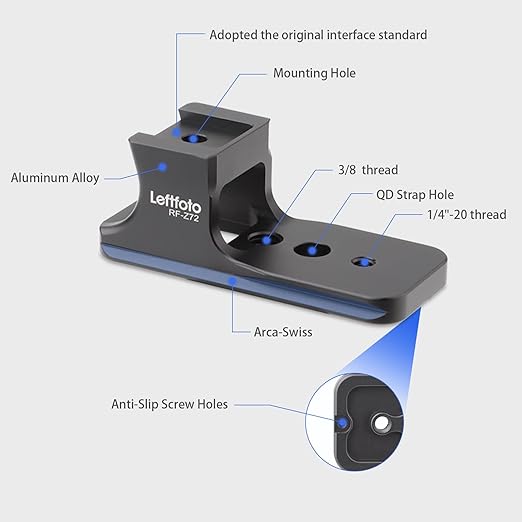 Arca Swiss互換のダブルダブテールが組み込まれています。寸法(長さ×幅×高さ):3.15インチ x 1.5インチ x 0.5インチ。
