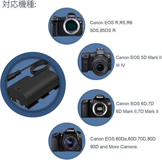 対応機種:F1TP ACK-E6 LP-E6 DCカプラーキットはキヤノンEOS R, EOS R5, R5-C, EOS R6,R7, EOS 90D, EOS 80D, EOS 70D, EOS 60D, EOS 6D, EOS 6D Mark ii, EOS 7D, EOS 7D Mark II, EOS 5DS, EOS 5DS R, EOS 5D Mark II, EOS 5D Mark III, EOS 5D Mark IV XC10 XC15 カメラに適用されます.
