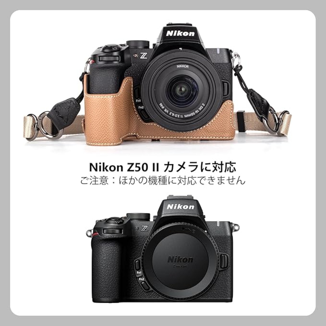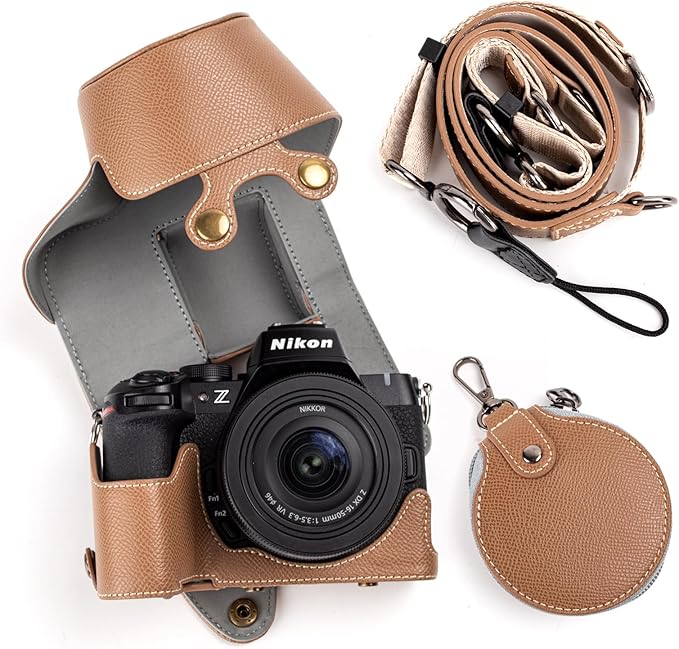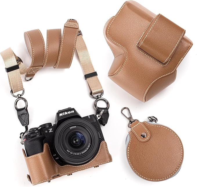 KINOKOO Nikon Z50 II/ Z50 M2用カメラケース、 Z50 IIケース Nikon Z50 II カバー Nikon Z50 II/ Z50 M2アクセサリー 16-50mmレンズ対応、全方面保護カバー、PUレザー、ストラップ付き(カーキ)