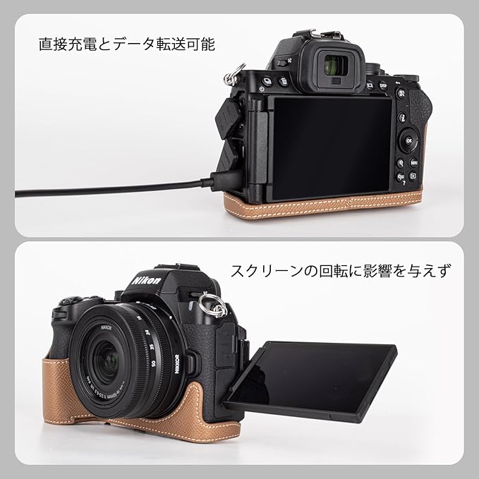 KINOKOO Nikon Z50 II/ Z50 M2用カメラケース、 Z50 IIケース Nikon Z50 II カバー Nikon Z50 II/ Z50 M2アクセサリー 16-50mmレンズ対応、全方面保護カバー、PUレザー、ストラップ付き(カーキ) a
