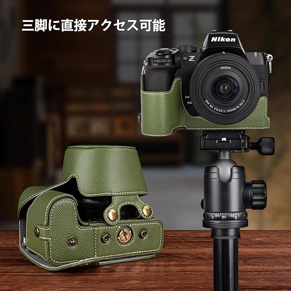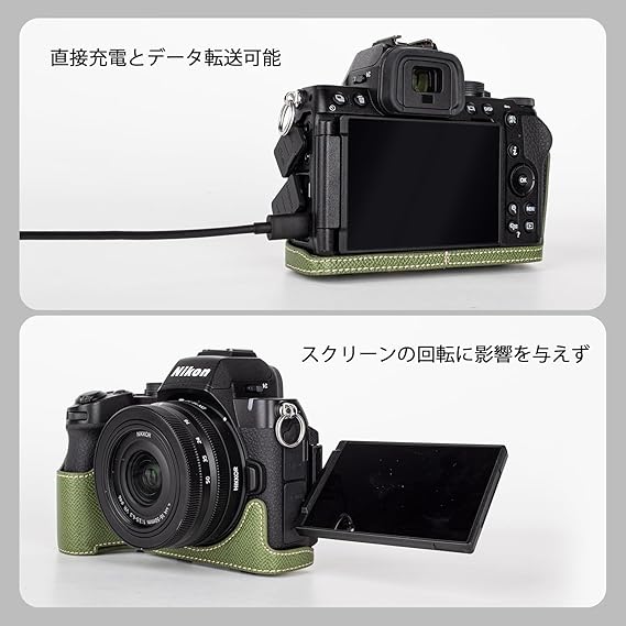 KINOKOO Nikon Z50 II/ Z50 M2用カメラケース、 Z50 IIケース Nikon Z50 II カバー Nikon Z50 II/ Z50 M2アクセサリー 16-50mmレンズ対応、全方面保護カバー、PUレザー、ストラップ付き(グリーン) a