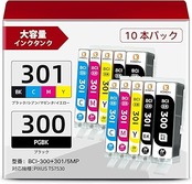 【パッケージ内容】キャノン 用 BCI-300/301 互換インクカートリッジ BCI-300 PGBK (ブラック)2本 BCI-301 C (シアン)2本 BCI-301 M (マゼンタ)2本 BCI-301 Y (イエロー)2本 BCI-301 BK (ブラック)2本 合計10本セットプラス説明書1枚