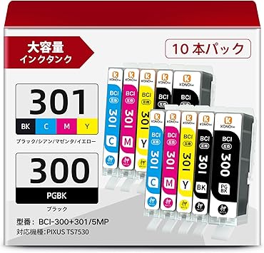 【KONOink】 BCI-301 BCI-300 キャノン 用 互換インク Canon TS7530 インク カートリッジ 301 300 インク5MP x2パック 説明書付き a