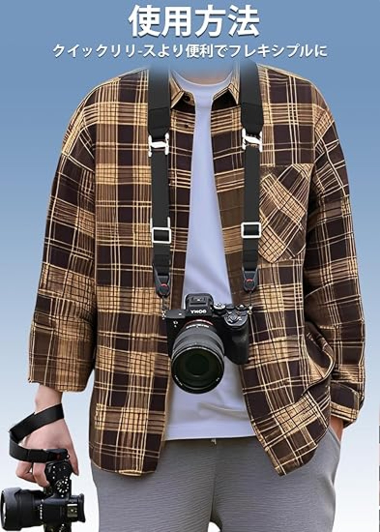 【アンカー設計】 丸アンカーのデザインが採用されており、ストラップを素早く簡単に着脱できます。不意の脱落を防ぐ独自のロック機構を採用しています。望遠鏡、ドローンリモコンなど他の機器を携帯できます。
