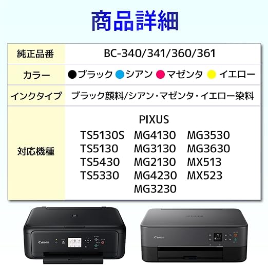 本商品はCanon製の純正品インクカートリッジのフタを外し、その中身を詰め替える方式のインクになります。純正品カートリッジは付属しておりません。また、残量検知機能はリセットされずゼロのままになりますので、お客様ご自身で残量検知機能をオフにし、それ以後は印字具合を見てインクの減り具合を判断していただく使い方になります。 なお、ご注文される前に純正品インクカートリッジのフタを外すことができるかどうか必ずご確認くださいますようお願いいたします。フタが外れない場合の返品は保証対象にはなりません。