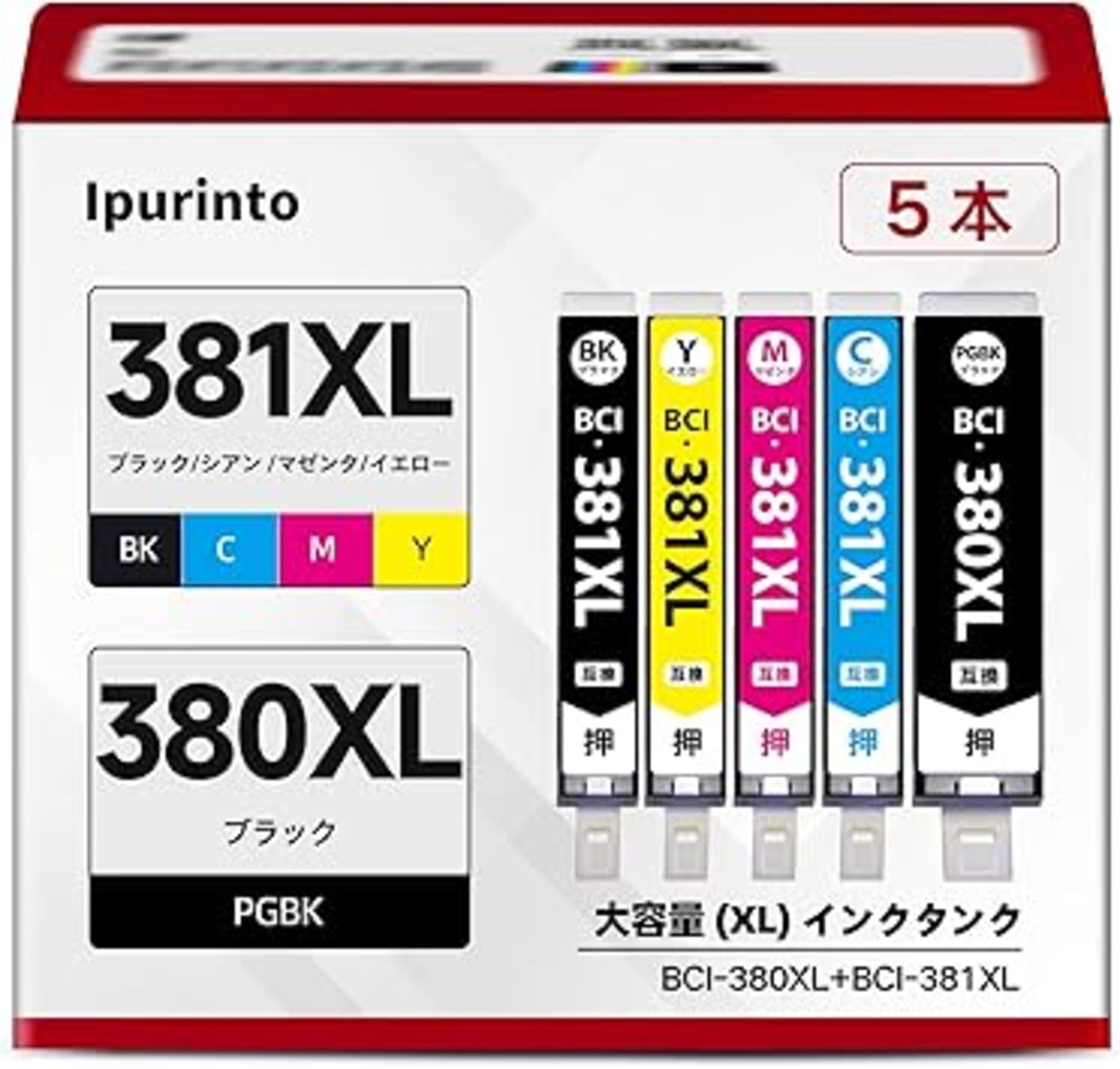 「Ipurinto」 BCI-381XL 380XL Canon 用 インク 380 381 大容量 5色パック BCI-381+380/5MP 互換インク キャノン対応機種:TS6330 TS6130 TS6230 TS7330 TS7430 TR9530 TR8530 TR7530 TR703 インク a