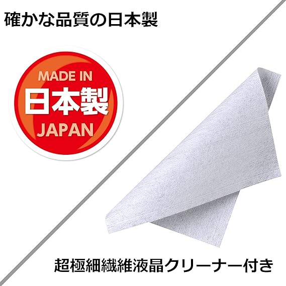 ホコリやチリを寄せ付けない帯電防止性とキズに強いハード処理で液晶画面を美しい状態のままキープ。