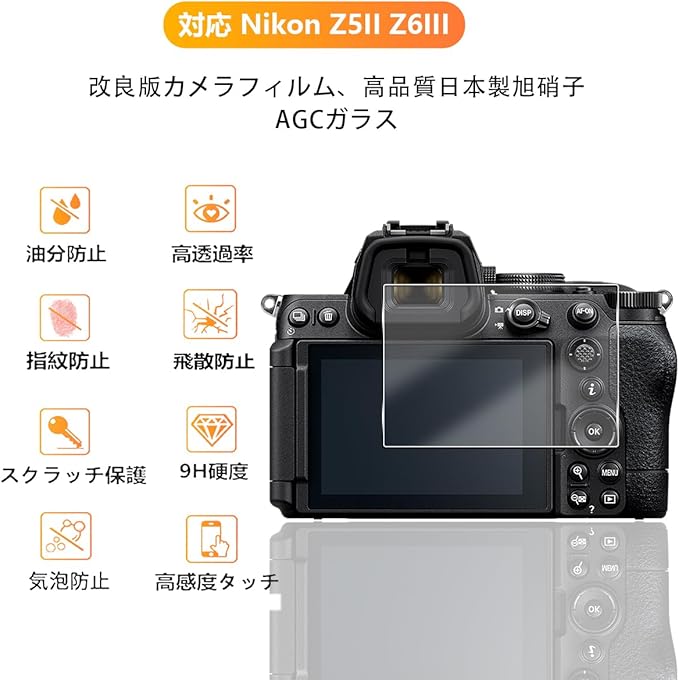 【2枚セット】 用 Nikon Z5II / Z6III / Z5 / Z6 / Z6II / Z7 / Z7II 保護フィルム ガラスフィルム 2枚 ニコン Z5II / Z6III / Z5 / Z6 / Z6II / Z7 / Z7II フィルム 【 日本旭硝子素材 9H強度 】 対応 Nikon Z5II / Z6III 液晶保護フィルム 強化ガラス 高透過率 3D Touch対応 飛散防止 高感度 耐衝撃 指紋・汚れ防止 ゼロ気泡 ラウンドエッジ加工 簡単貼り付け a