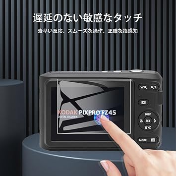 【対応機種】:kodak pixpro fz45 に適用できます,kodak pixpro fz45 超薄型保護フィルム。ご注文の際に、モデル番号を対照し、確認をお願いします。この機器は周辺部が曲面となったラウンド仕様のため、保護フィルムを端まで貼ることができません。そのため、表示部分よりも保護フィルムが小さくなっています。もし全面になると、2-3mmの浮いた可能性が高いと思います。脱着にもやすいです。でも有効画面よりも狭いって事はないので、ご安心くださいませ。