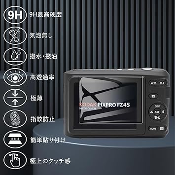 【BARDATS】For kodak pixpro fz45 保護フィルム 9H 硬度 指紋防止 自動吸着 撥水撥油 飛散防止 気泡ゼロ kodak pixpro fz45 液晶保護フィル【2枚セット】 a