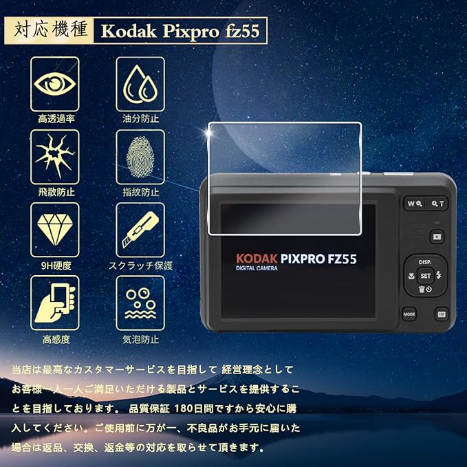 【対応機種】対応 kodak pixpro fz55 / fz45 ガラスフィルム 2 枚セット kodak 製カメラの液晶画面サイズは機種により異なります。お買い求めの前にお手持ちのカメラが対応機種かどうかご確認願います。当店は最高なカスタマーサービスを目指して 経営理念としてお客様一人一人ご満足いただける製品とサービスを提供することを目指しております。(180日間の安心な保証があります)