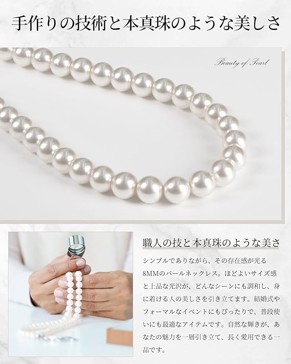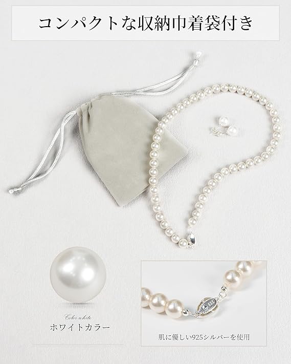 [Alivern] パール ネックレス シルバー925 日本製 パールネックレス 高級国産 真珠 冠婚葬祭用 8mm a