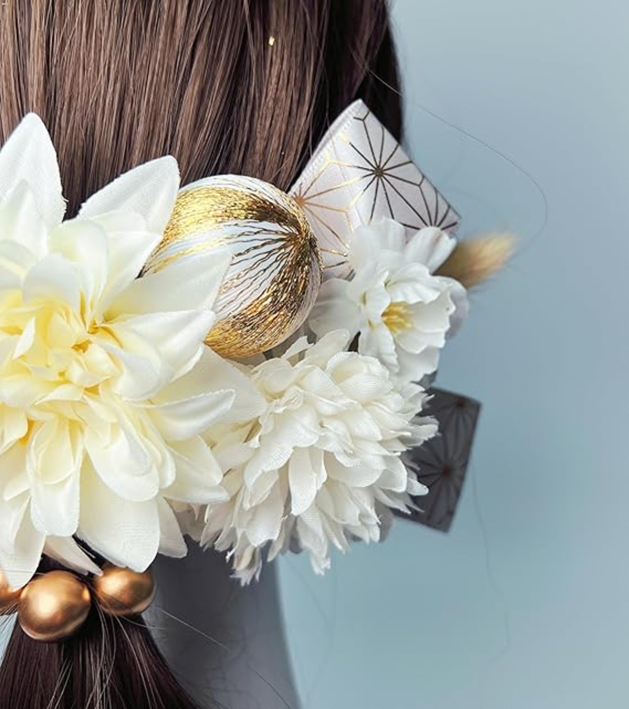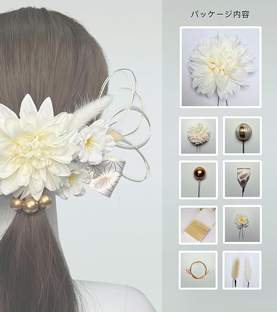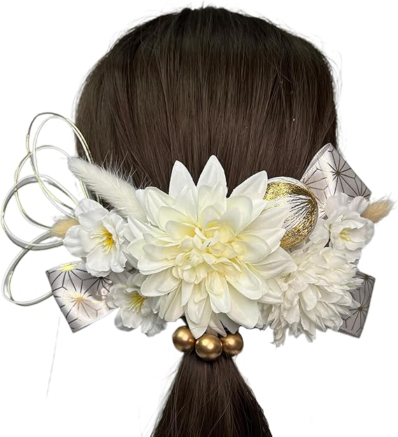 髪飾り ダリア 白無垢 白 アカザ リボン 和玉 水引 金箔 和装 袴 着物 浴衣 振袖 卒業式 成人式 結婚式 人気 ブライダル 花嫁 ロープ ゴールド シルバー ヘアアクセサリー[TPFariryTale] a