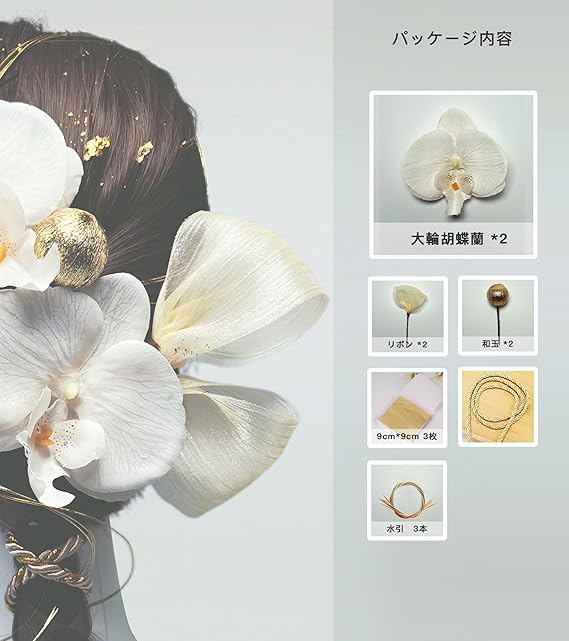髪飾り 胡蝶蘭 和紐 とリボンと 水引金箔 人気 卒業式 成人式 結婚式 和装 袴 着物 浴衣に ブライダル 花嫁 ロープ ゴールド シルバー ヘアアクセサリー [T.P&FairyTale] a