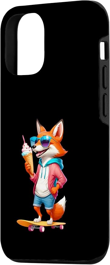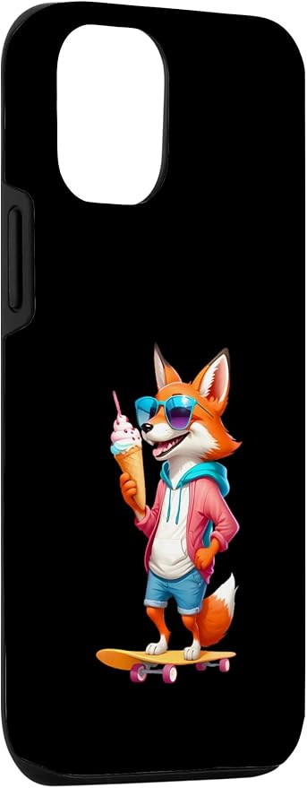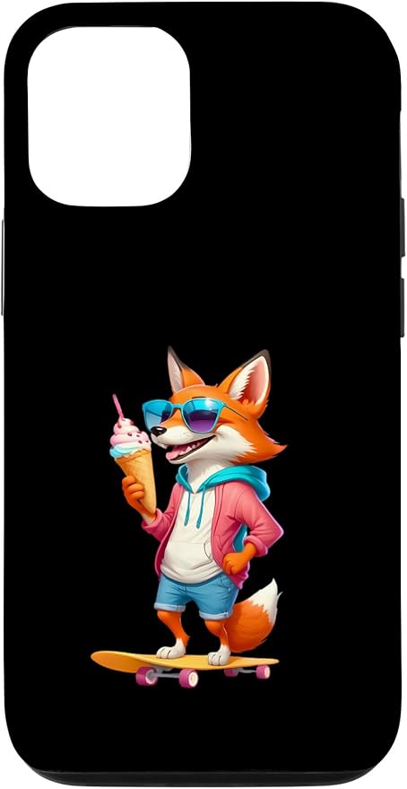ロングボードに乗ってアイスを持つおしゃれなキツネ スマホケース iPhone 12/12 Pro 用 a