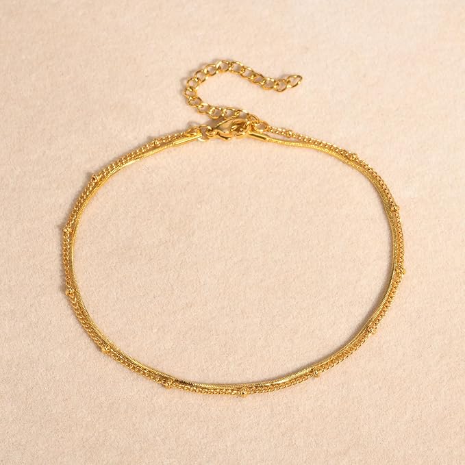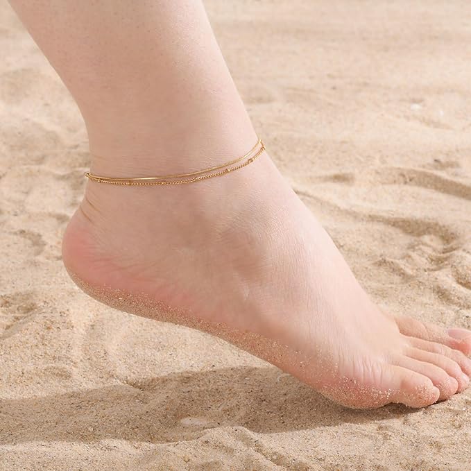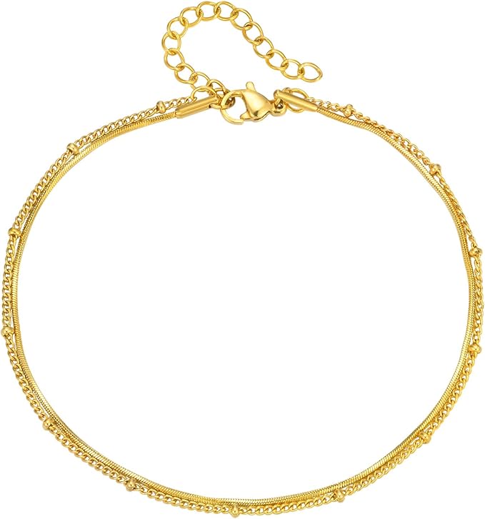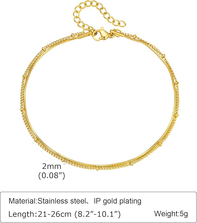 アンクレット レディース ゴールド ダブルチェーン ステンレススチール IPゴールドメッキ シンプル エレガント 夏 ビーチアクセサリー a