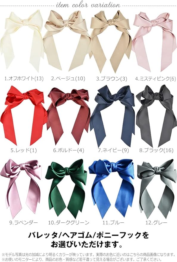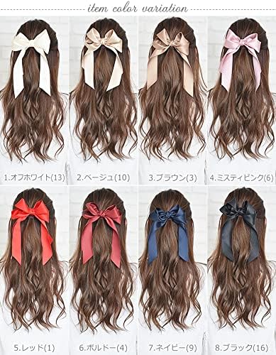 リボン バレッタ 大きめ レディース ロングサテン 結婚式 かわいい ヘアアクセサリー 5.レッド a