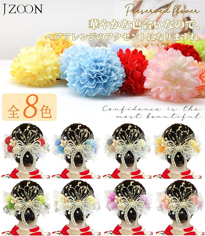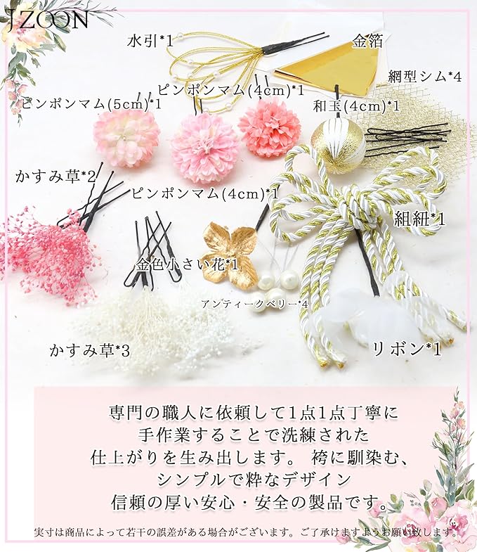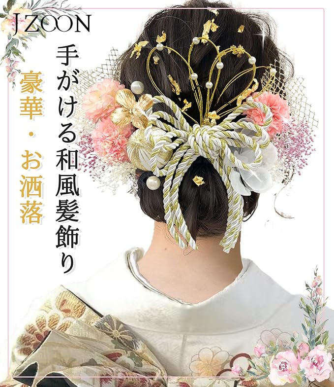 [JZOON] 成人式 髪飾り【8色展開】 七五三 かすみ草 ドライフラワー 水引き 小花モチーフ 造花 和装 金箔 ゴールド ヘッドドレス ヘアアクセサリー 入学式 振袖 卒業式 着物 袴 浴衣 ブライダル ウエディング 発表会 22点セット PX2020 a
