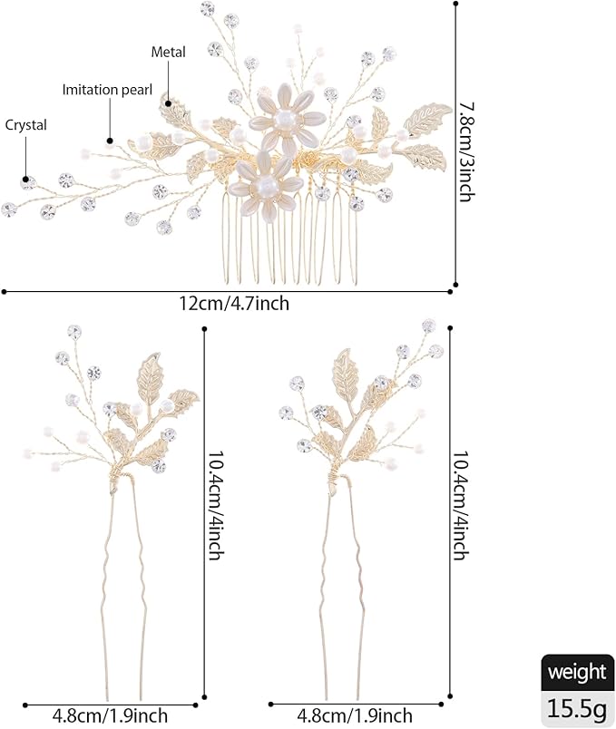 Famihot ヘアアクセサリー 髪飾り パール コーム Uピン 5点セット 木の葉 花モチーフ 花嫁 かんざし クリスタル ヘッドドレス 手作り ウェディング 結婚式 披露宴 二次会 発表会 卒業式 成人式 入学式 パーティー 和装用 ヘアアクセサリー 浴衣 着物 髪飾り 和風 合金製 ゴールド a