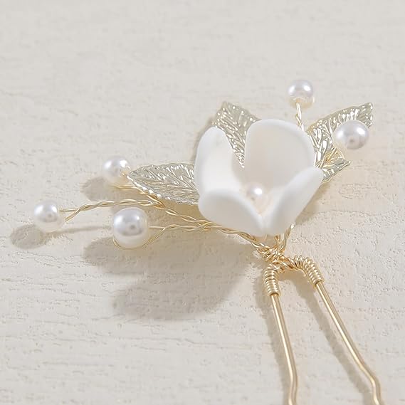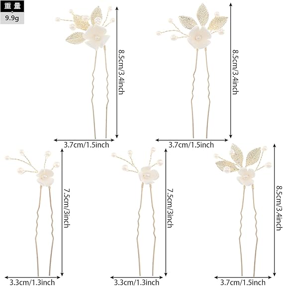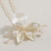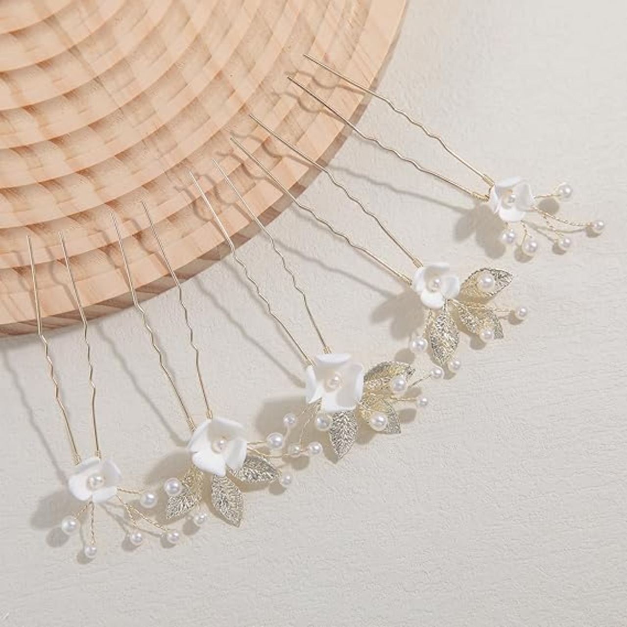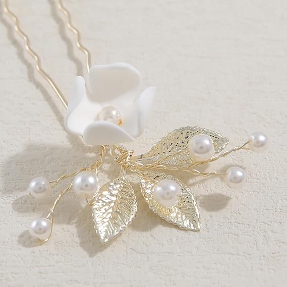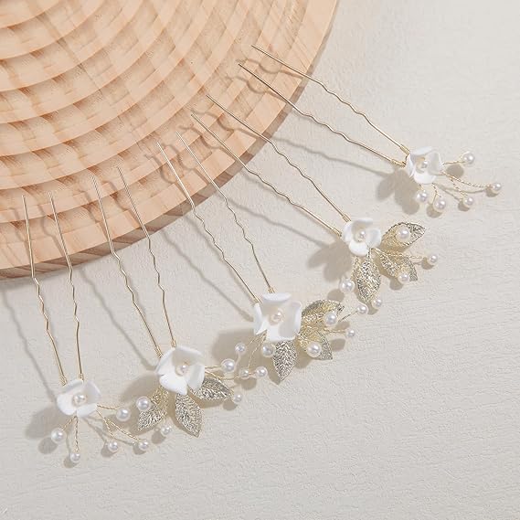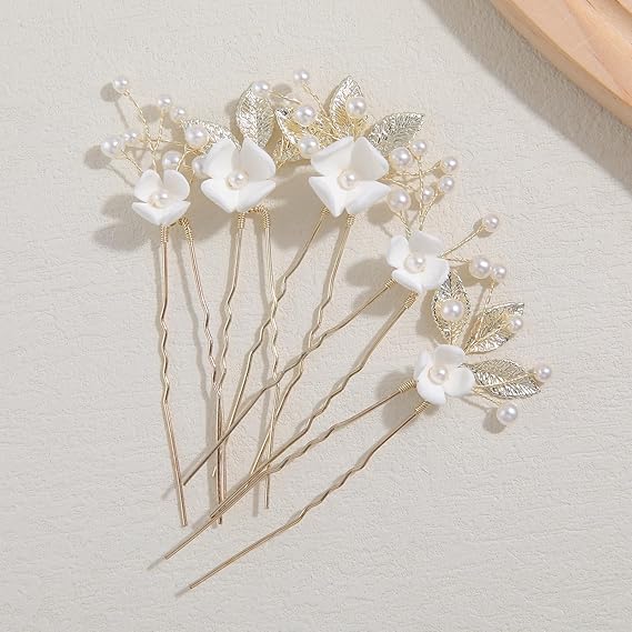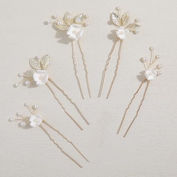 Famihot 髪飾り ヘアアクセサリー 花 木の葉モチーフ パールヘアピン 5本セット Uピン ヘッドドレス ウェディング 結婚式 お呼ばれ 披露宴 卒業式 発表会 和装用 手作り髪飾り 合金製 (01) a