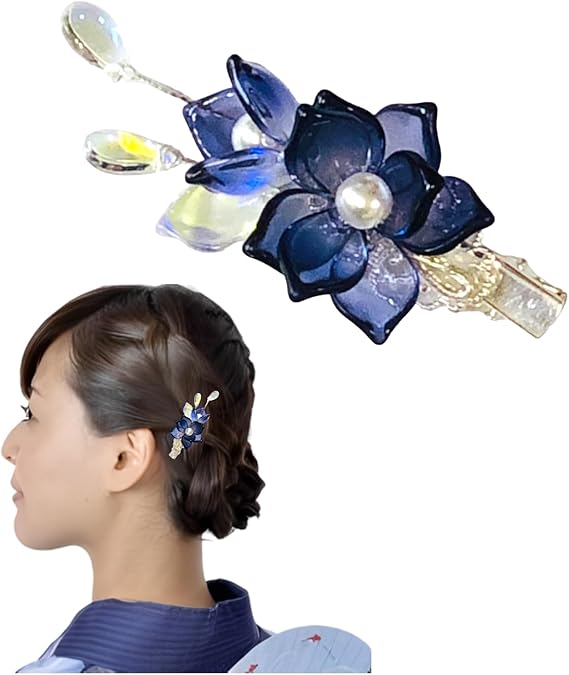 [&JuJu] 髪飾り 浴衣 【透明感のある涼やかな桔梗モチーフ】 かんざし 和装小物 着物 (藍色A) a