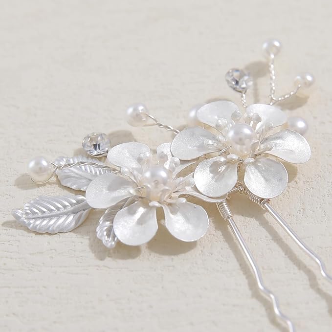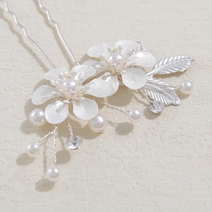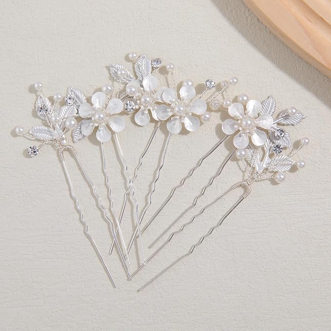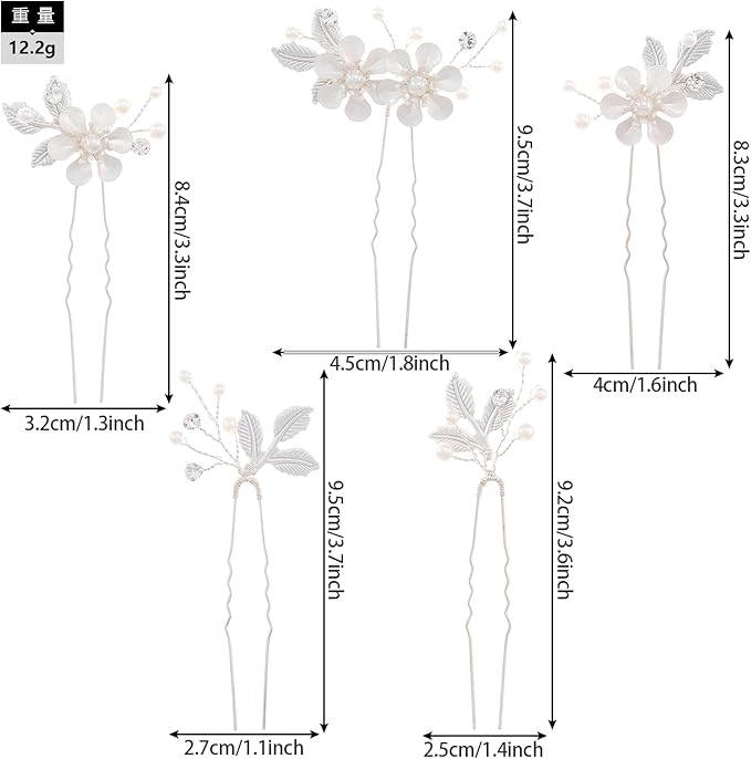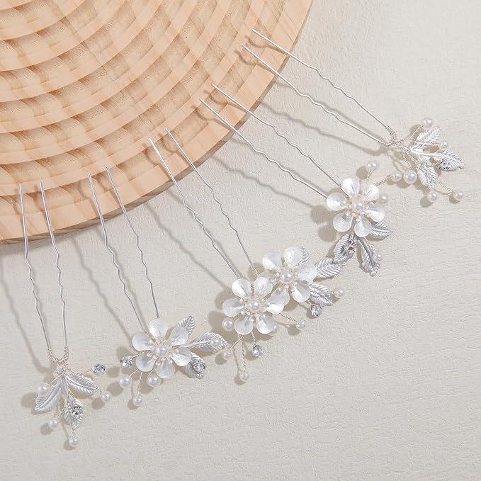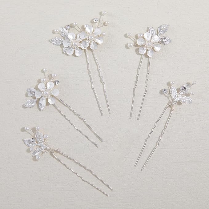 Famihot 髪飾り ヘアアクセサリー 花 木の葉モチーフ パールヘアピン 5本セット Uピン ヘッドドレス ウェディング 結婚式 お呼ばれ 披露宴 卒業式 発表会 和装用 手作り髪飾り 合金製 (04) a