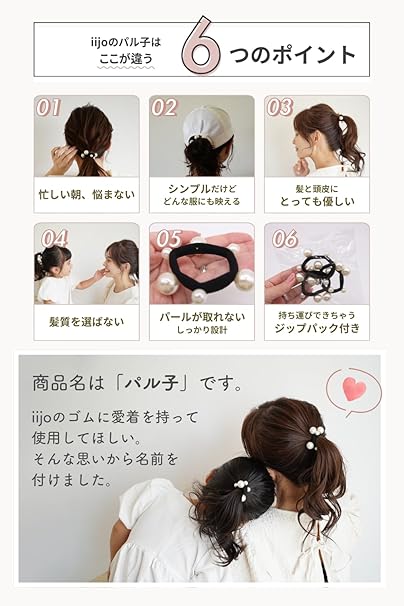 【専門家推薦! 30秒でスタイル完成】 ヘアゴム パール パル子 iijo ヘアアクセサリー おしゃれ シンプル 黒 跡がつかない 痛くない (パル子) a