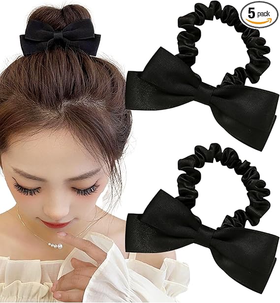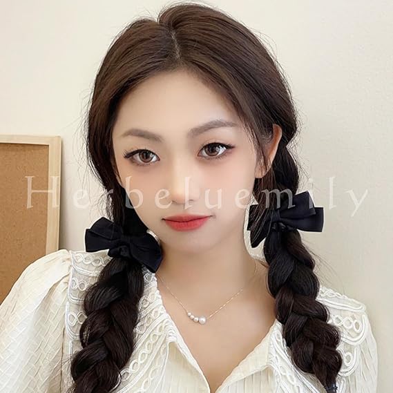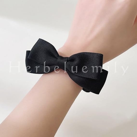 [Herbeluemily] リボン シュシュ ヘアゴム 髪飾り リボンゴム 髪ゴム リボンシュシュ ヘアアクセサリー ブラック 2本セット a