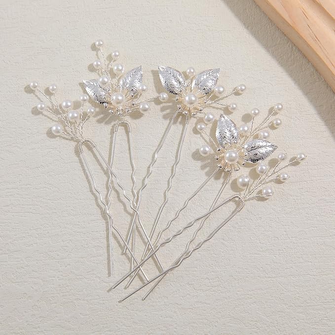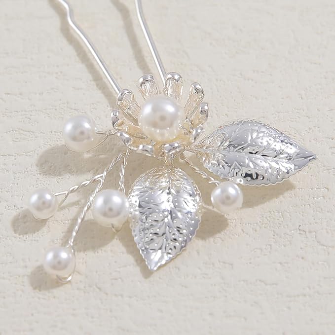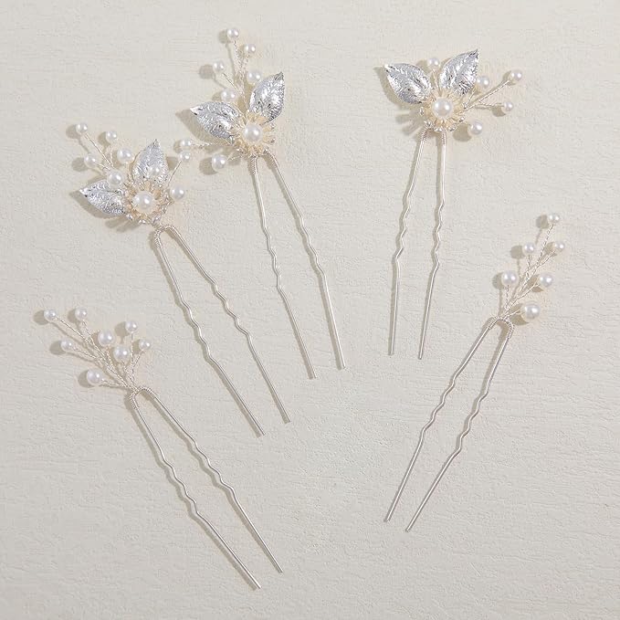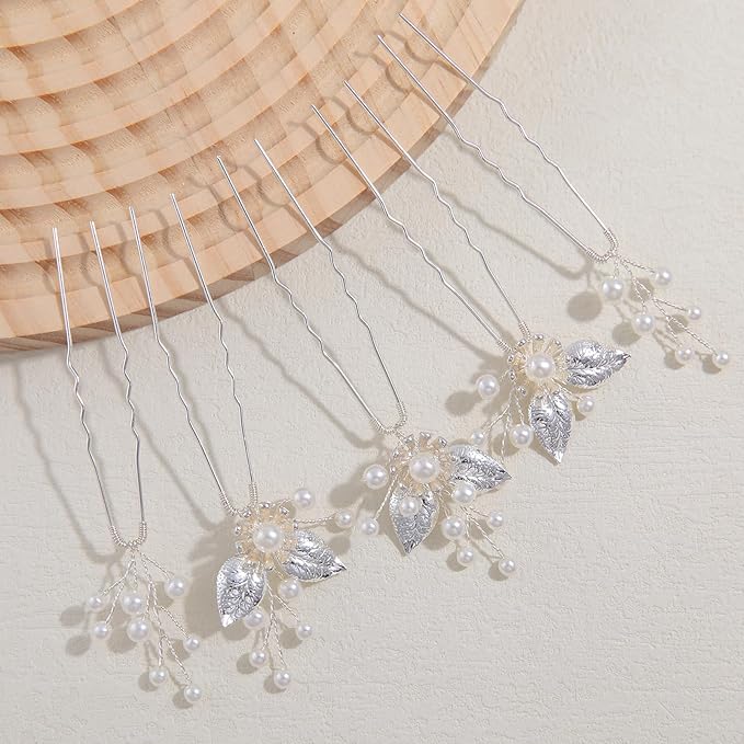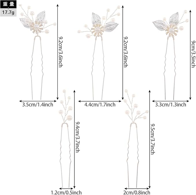 Famihot 髪飾り ヘアアクセサリー 花 木の葉モチーフ パールヘアピン 5本セット Uピン ヘッドドレス ウェディング 結婚式 お呼ばれ 披露宴 卒業式 発表会 和装用 手作り髪飾り 合金製 (05) a