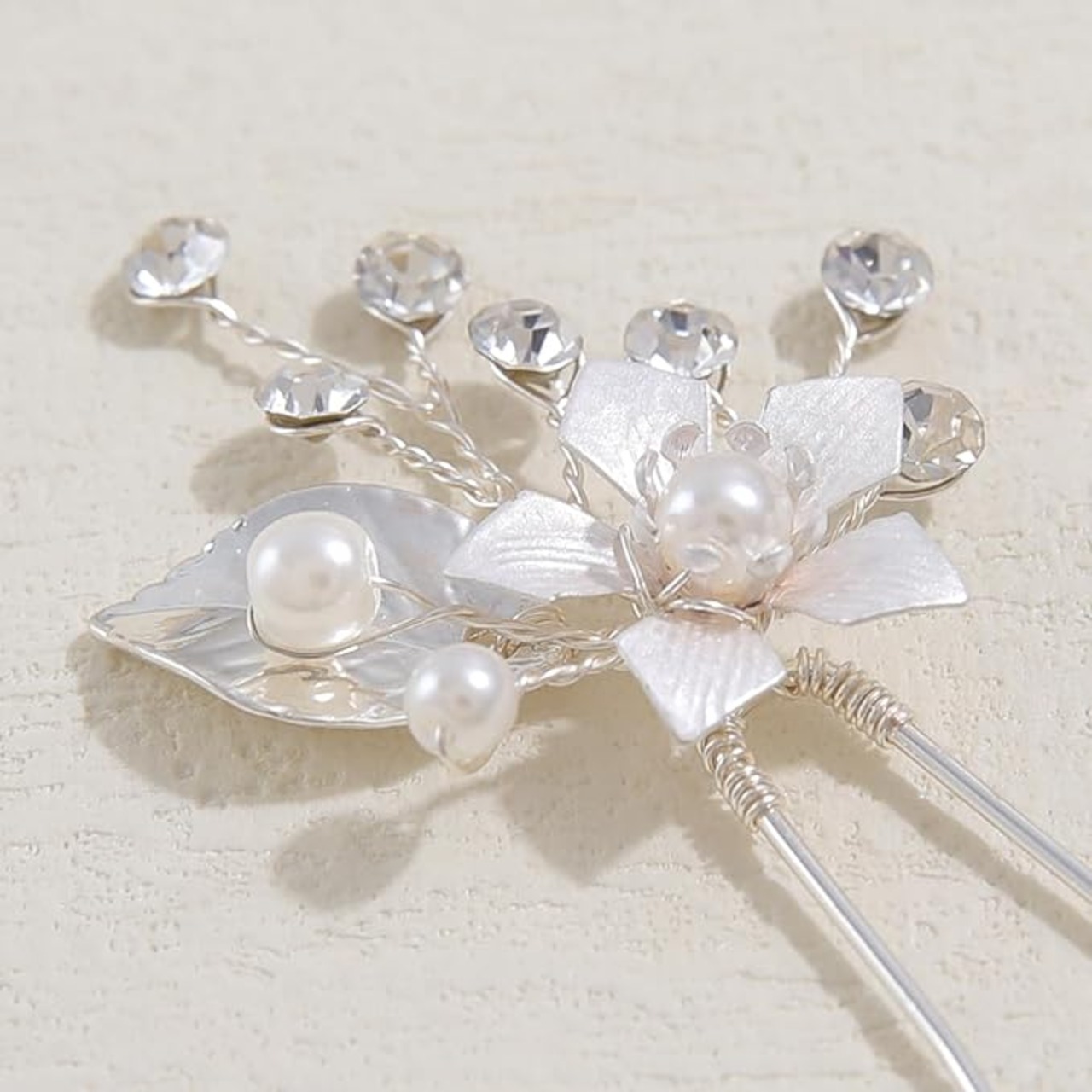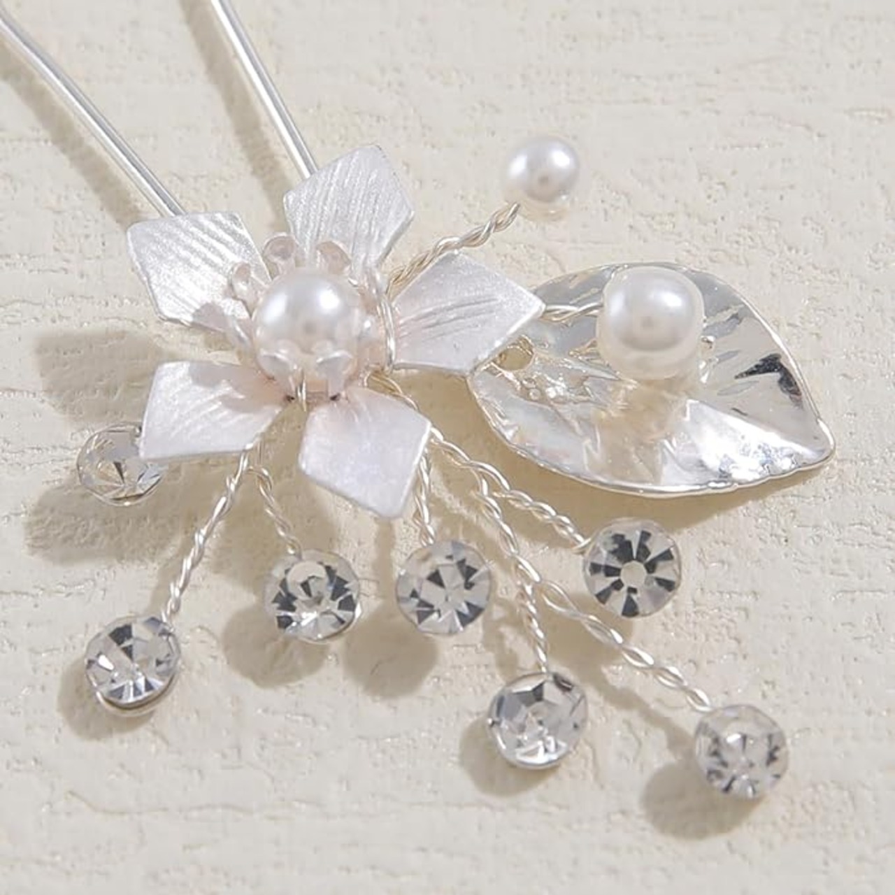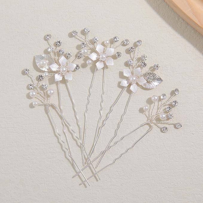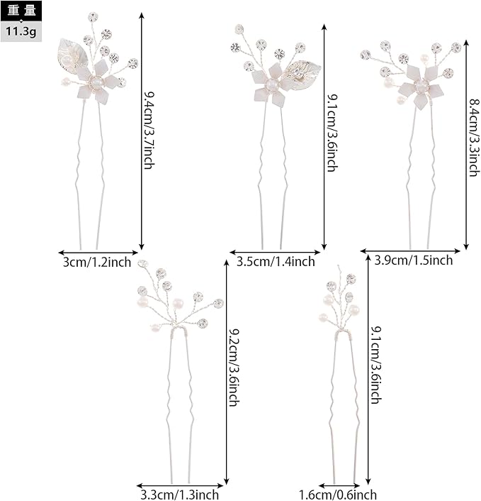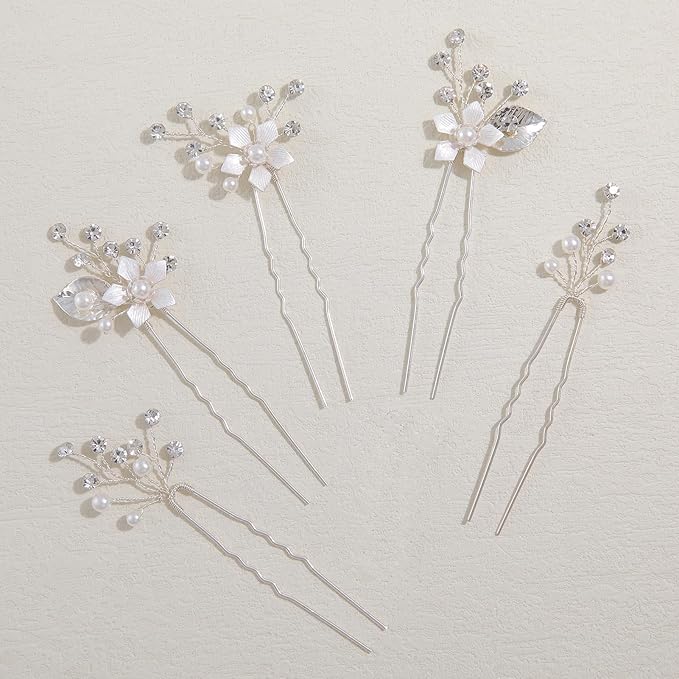 Famihot 髪飾り ヘアアクセサリー 花 木の葉モチーフ パールヘアピン 5本セット Uピン ヘッドドレス ウェディング 結婚式 お呼ばれ 披露宴 卒業式 発表会 和装用 手作り髪飾り 合金製 (06) a