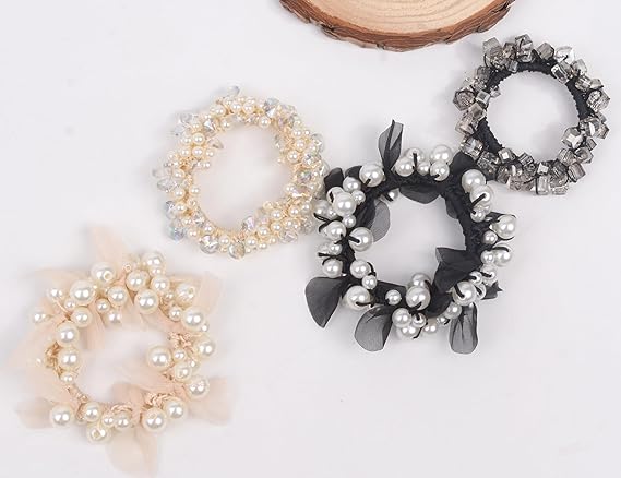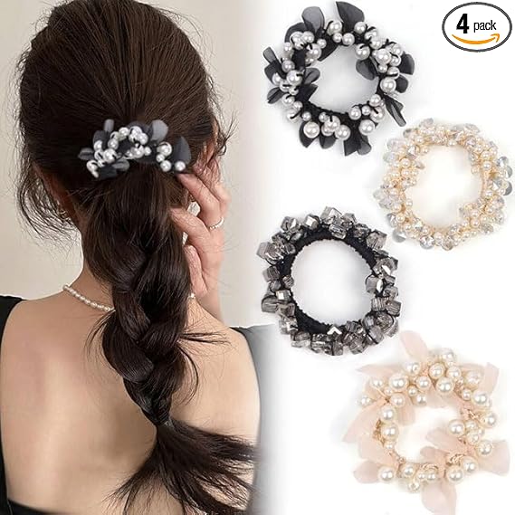 BIANHUAN ヘアゴム パール シンプル ヘアアクセサリー レディース カジュアル ラインストーン 4本セット パール エレガント 上品 大人っぽい 女の子 可愛い 入学式 入園式 おしゃれ 髪飾り まとめ髪 a