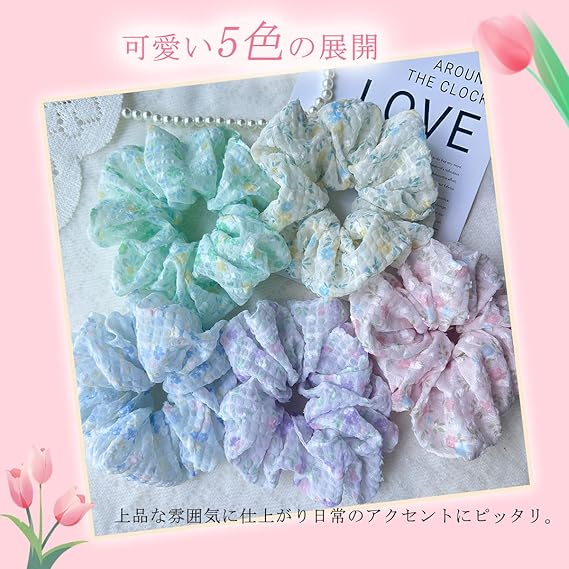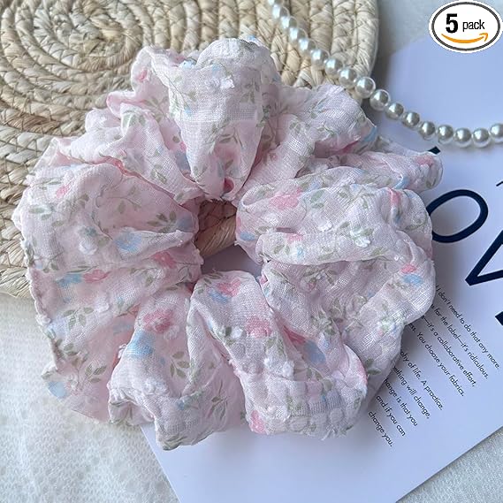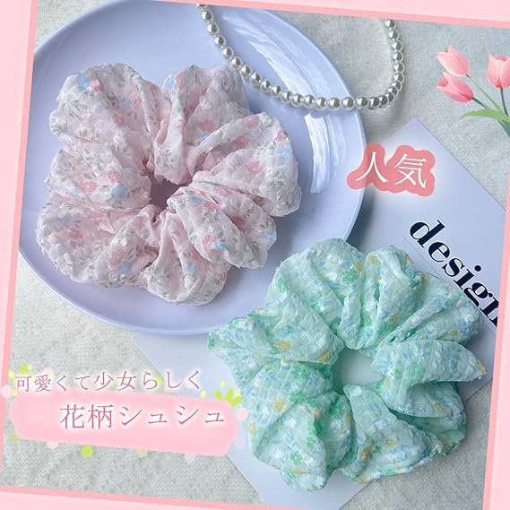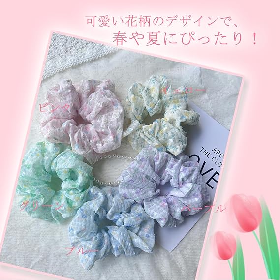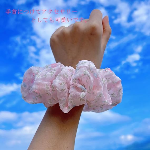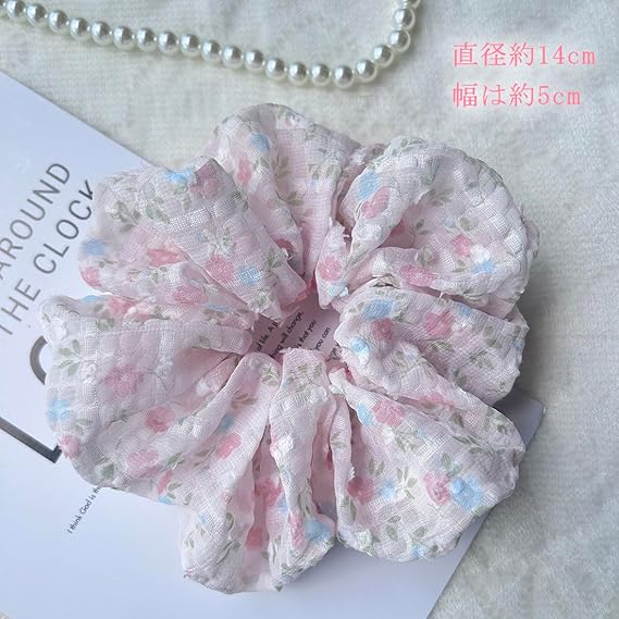 Masvan シュシュ おしゃれ 大人 可愛い シュシュ 大きめ 花柄 ボリューム 髪ゴム 髪飾り5色 ヘアゴム 髪留め ヘアアクセサリー (ピンク) a